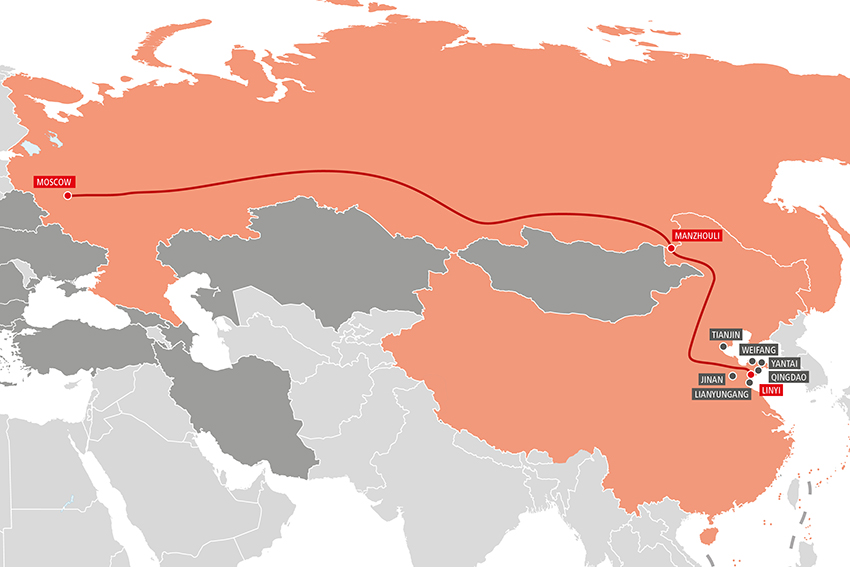 | Chongqing–Moskau | Zabaikalsk/Manzhouli Khorgos/Altinkol |