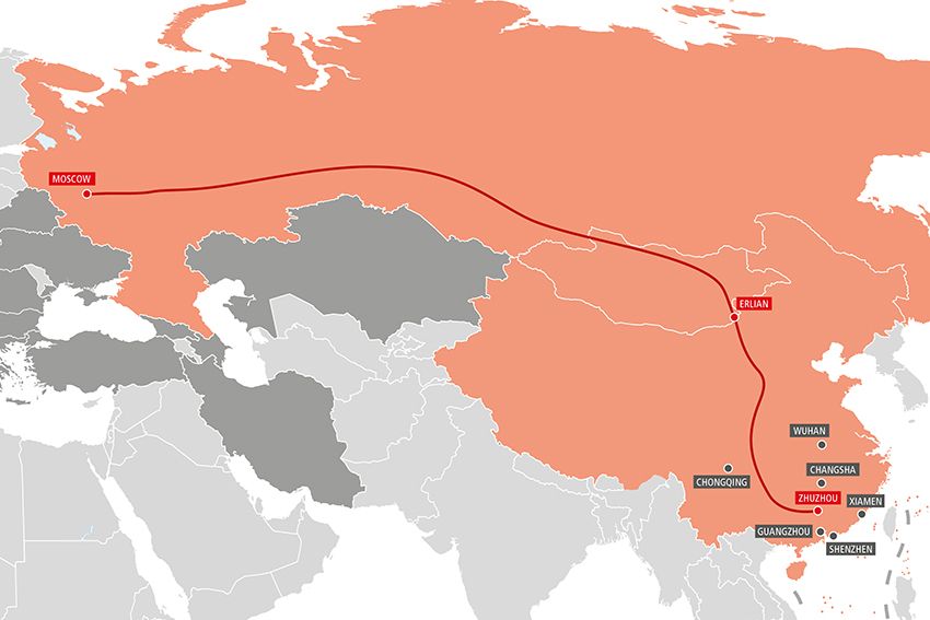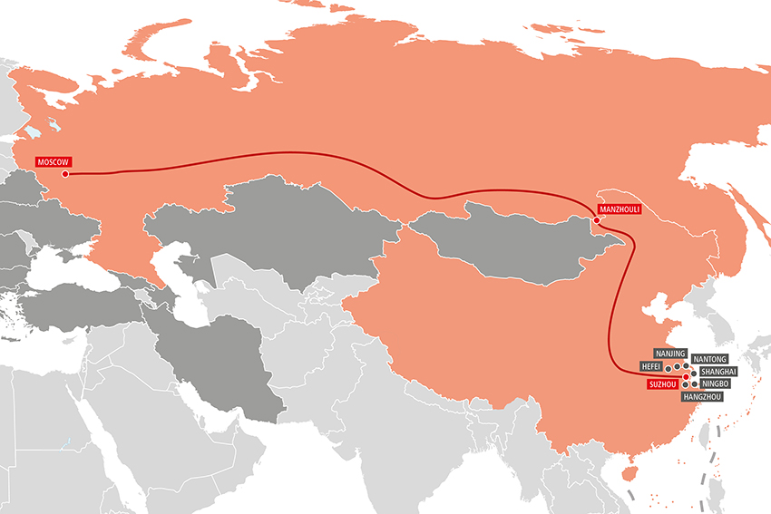 | Chongqing–Moskau | Zabaikalsk/Manzhouli Khorgos/Altinkol |