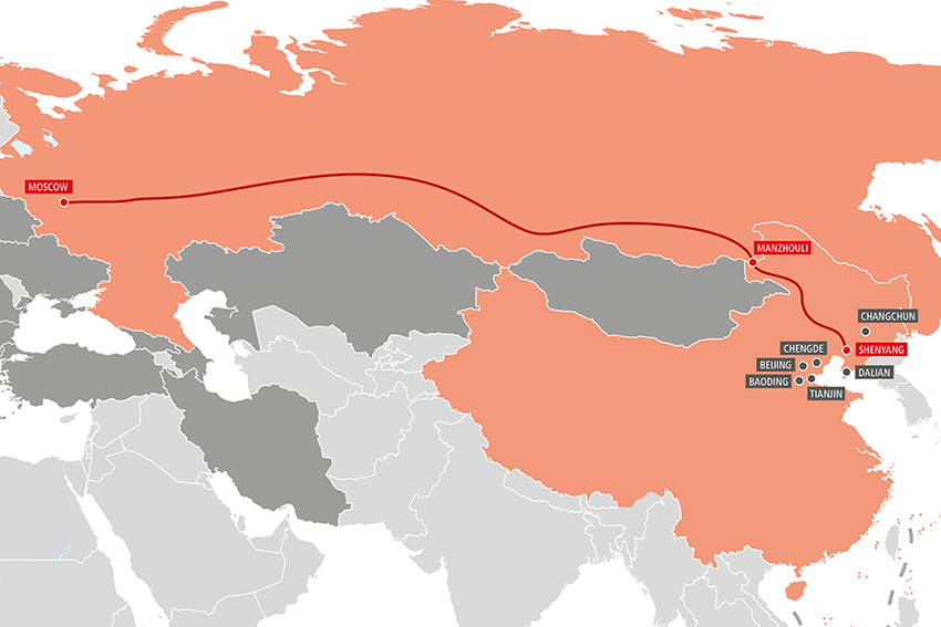 | Chongqing–Moskau | Zabaikalsk/Manzhouli Khorgos/Altinkol |